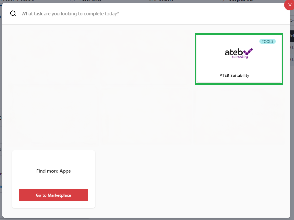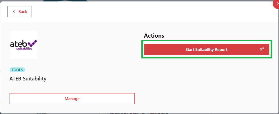 This will present you with a new pop up asking "What task are you looking to complete today?". Click the ATEB Suitability tile: